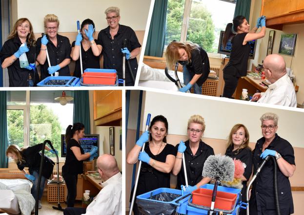Zo veel mogelijk maken ze samen met cliënten de kamers schoon. “Soms ben je bezig en dan vraagt iemand, mag ik je stofzuiger lenen? En een ander: Mag ik je mop?”, vertelt Monique. “Nee, eerst stofzuigen en dan de mop, zeg ik dan. ‘Oh ja.’ Niet iedereen kan evenveel. Al halen ze alleen de sloop van het kussen of halen ze het prullebakje leeg. Met liefde en plezier willen ze dat.”